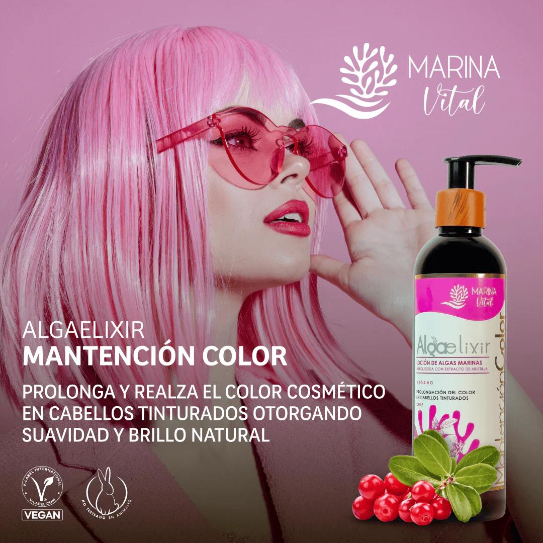 Tratamiento capilar de última generación formulado a base de Algas Marinas y Extracto de Murtilla, indicado para prolongar y realzar el color cosmético en cabellos tinturados, otorgando suavidad y brillo natural.