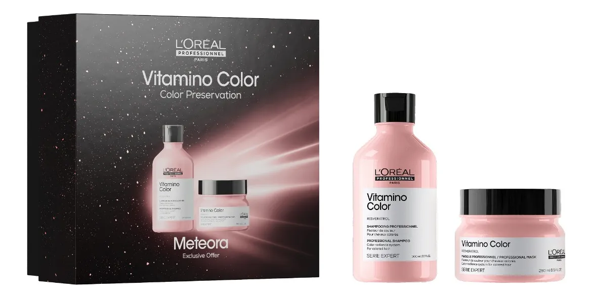 El Kit X2 L’oréal Professionnel 550ml Vitamino Color incluye un shampoo y una mascarilla diseñados para limpiar delicadamente el cabello teñido y prolongar la duración del color hasta 8 semanas. El cabello teñido se muestra hasta 6 veces más luminoso y vibrante. Además, se siente más liviano, fácil de manejar y suave al tacto. La fórmula está enriquecida con resveratrol, un potente antioxidante que ayuda a mantener un cabello teñido impecable.